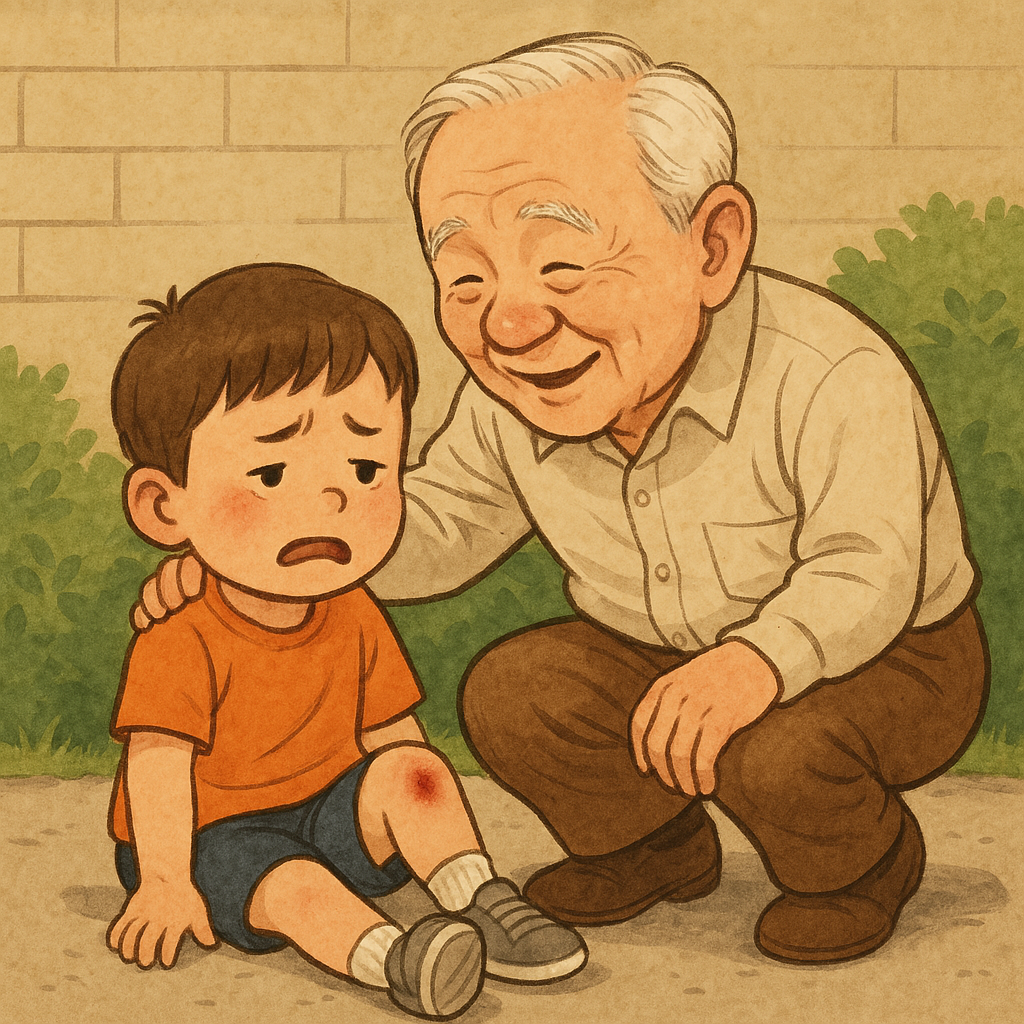 그때 지나가던 인자한 할아버지가 다가와 아이의 등을 토닥이며 말했다.