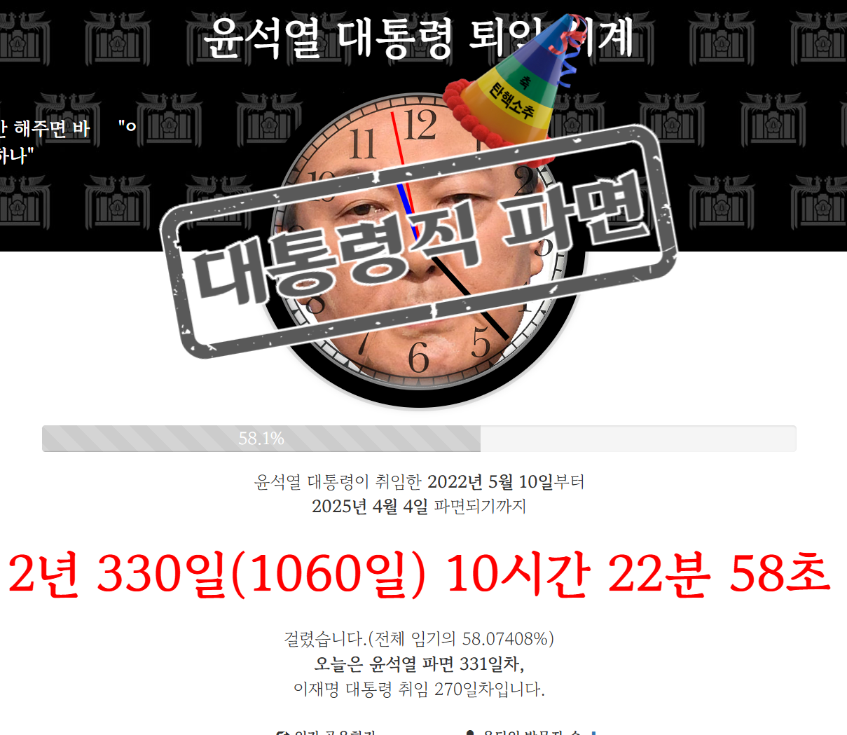 고통스러운 시간은 길게 느껴진다. 매 순간이 견디기 힘들고, 하루가 끝나기를 손꼽아 기다리고, 내일이 오지 않기를 바라게 된다. 그래서 윤석열의 1,060일은 끝없이 길었다.